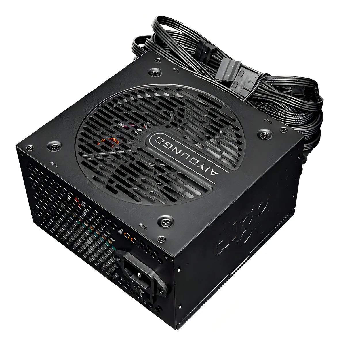 Especificações: - Marca: Aigo - Modelo: AG-AT550-BK - Potência: 550W - Certificação de eficiência: 80PLUS Bronze - Corrente de entrada: 12.5 - 6.3A - Tensão de entrada: 100-240 V - Faixa de frequência de entrada: 50-60Hz - Ventoinha: 120mm HDB - Proteção: OPP/OVP/UVP/SCP/NLP/OTP Conectores: - 1 x Conector 20+4 PINS - 1 x CPU 4+4 PINS - 2 x PCI-E 6+2 PINS - 4 x SATA - 2 x Molex 4 PINS - Dimensões: 140 x 150 x 86 mm